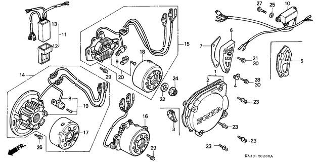 Honda CR125RJ (1988) E-02 LEFT CRANKCASE COVER / GENERATOR/C.D.I. UNIT